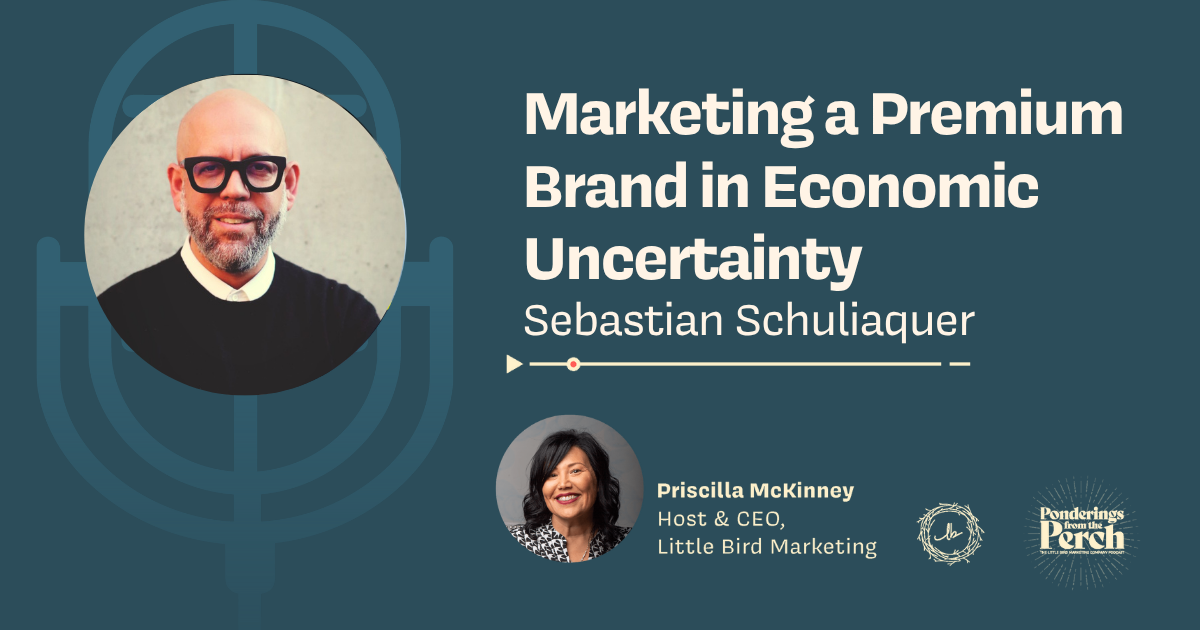 On this episode of Ponderings from the Perch, the Little Bird Marketing podcast, host and CEO Priscilla McKinney talks with guest and Global Director of Premiumization Insights & Foresight at AB InBev Sebastian Schuliaquer about how premium brands navigate economic uncertainty and shifting consumer behaviors. They explore why established brands with proven quality maintain consumer loyalty during tough times, how cultural relevance shapes brand selection, and why smart consumption is replacing impulsive spending across demographics.