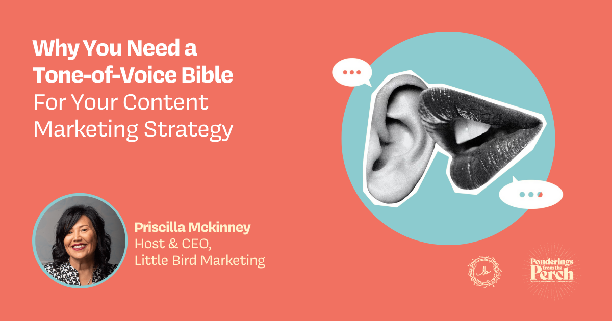 On this episode of Ponderings from the Perch, the Little Bird Marketing podcast, host and CEO Priscilla McKinney discusses the three pillars of developing an authentic brand tone of voice. She breaks down how personality, perspective, and language work together to create communications that sound distinctly like your brand across every touchpoint, from formal proposals to casual social media interactions.